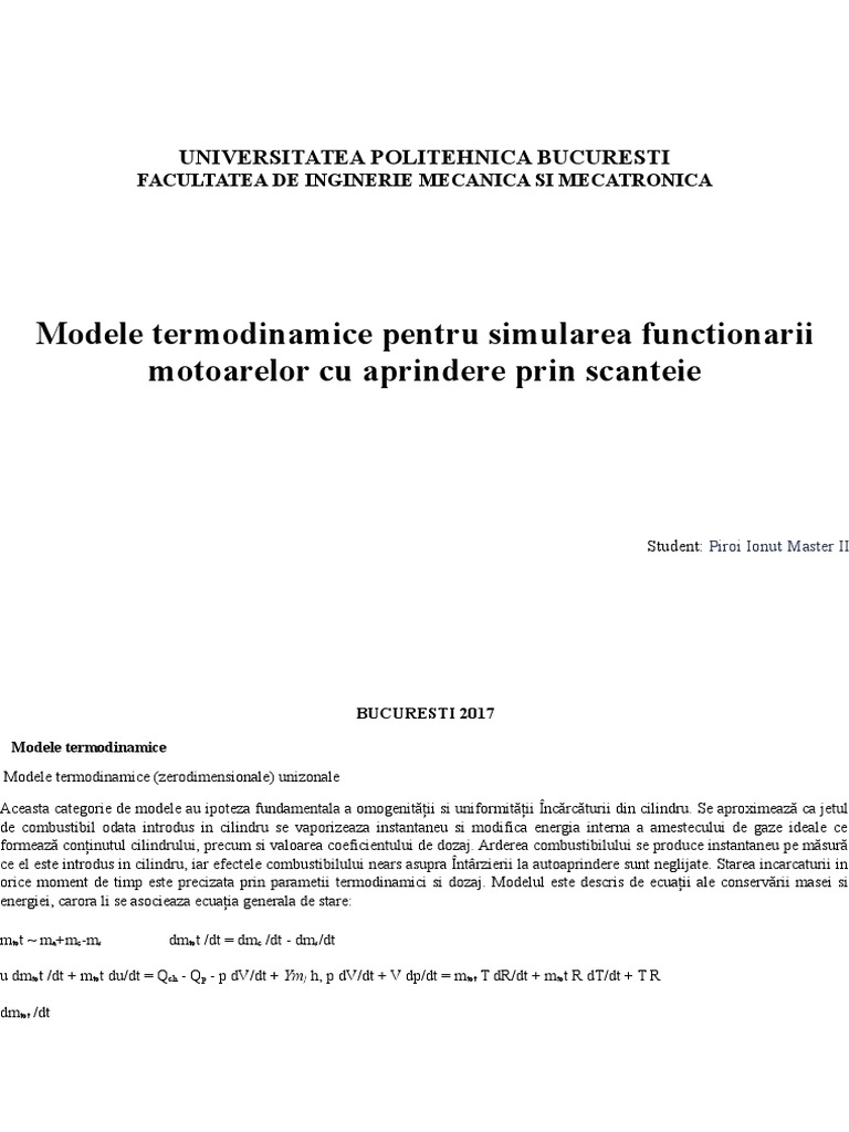 formeaz coninutul cilindrului, precum si valoarea coeficientului de dozaj. Arderea combustibilului se produce instantaneu pe msur