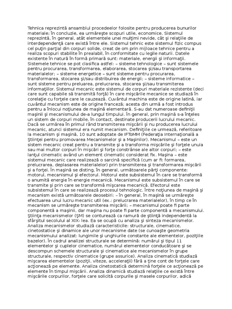 mecanic, atunci sistemul era numit mecanism. Definiiile ce urmeaz, referitoare