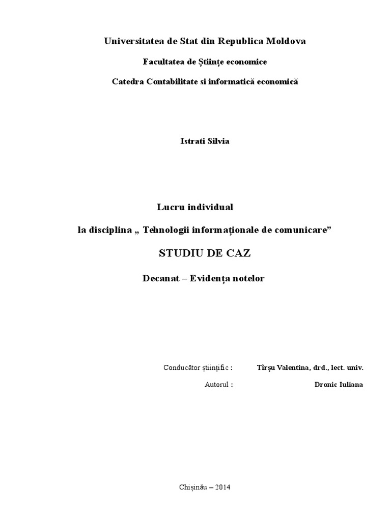 Conductor tiinific : Tru Valentina, drd., lect. univ.