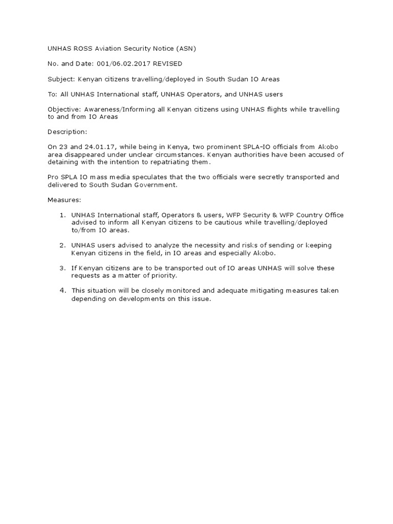 Objective: Awareness/Informing all Kenyan citizens using UNHAS flights while travelling