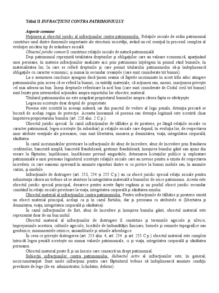 unei persoane, n materia infraciunilor analizate aici prin patrimoniu nelegem n primul rnd bunurile, n
