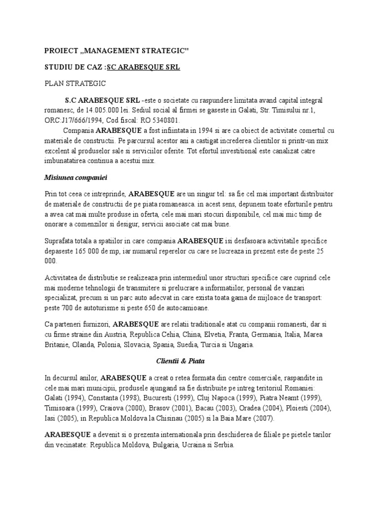 STUDIU DE CAZ :SC ARABESQUE SRL