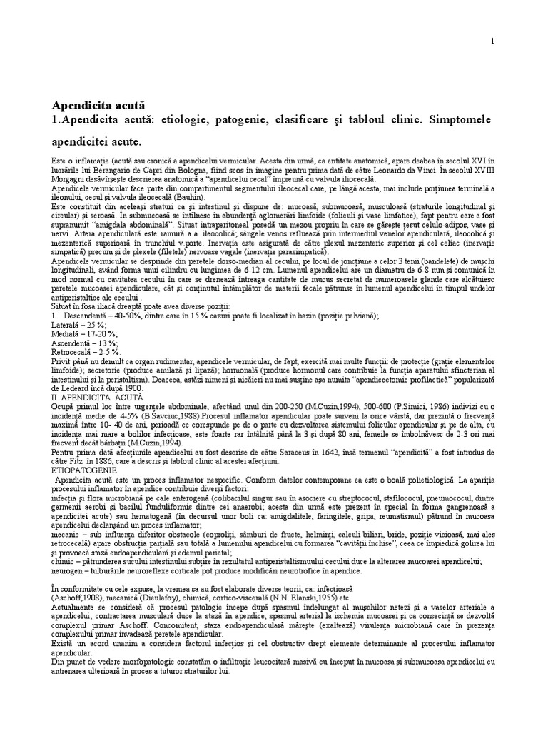 Apendicita acut este un proces inflamator nespecific. Conform datelor contemporane ea este o boal polietiologic. La apariia