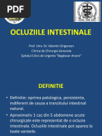 Ocluzia intestinal acut - stoparea pasajului bolului alimentar pe tractul intestinal (maladia aderenial, tumoare obturatorie a