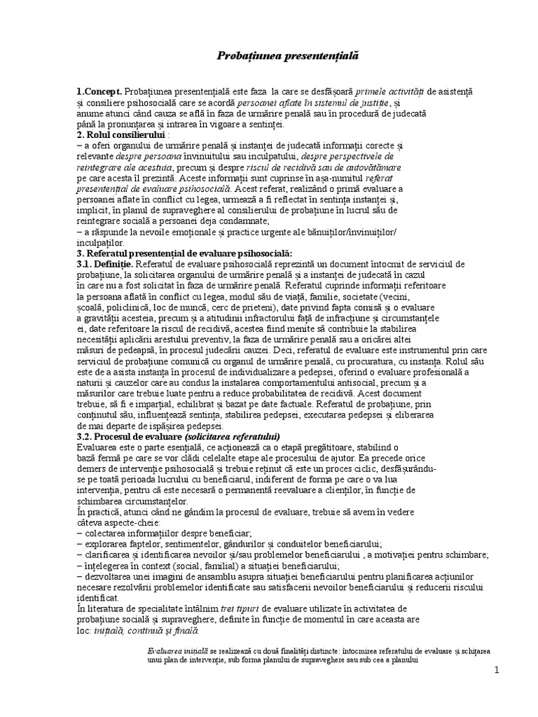 presentenial de evaluare psihosocial. Acest referat, realiznd o prim evaluare a