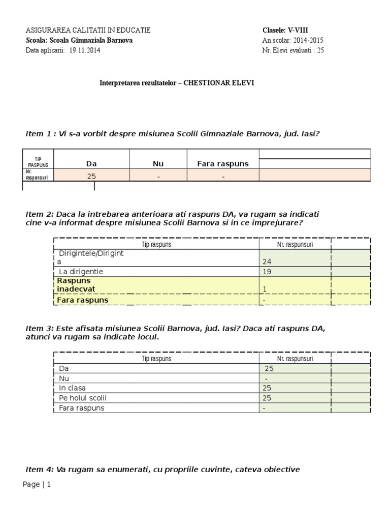Item 1 : Vi s-a vorbit despre misiunea Scolii Gimnaziale Barnova, jud. Iasi?