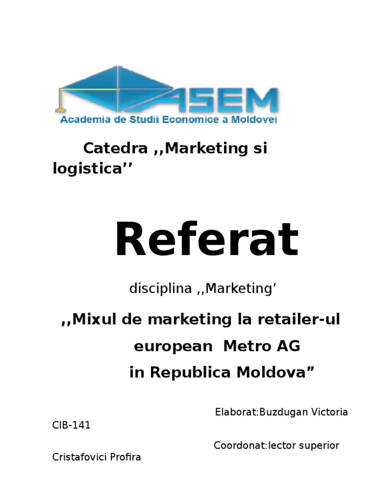 distribuitori din Moldova sau Romnia. n cadrul magazinelor METRO Cash & Carry Moldova lucreaz