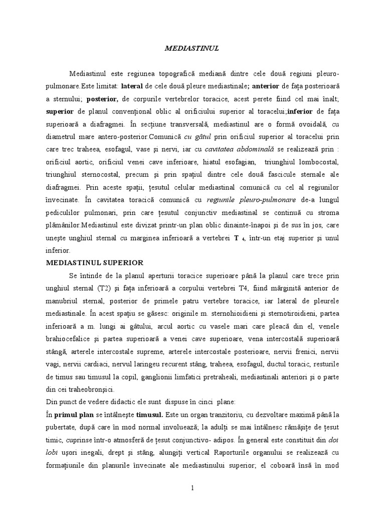 Mediastinul este regiunea topografic median dintre cele dou regiuni pleuro-
