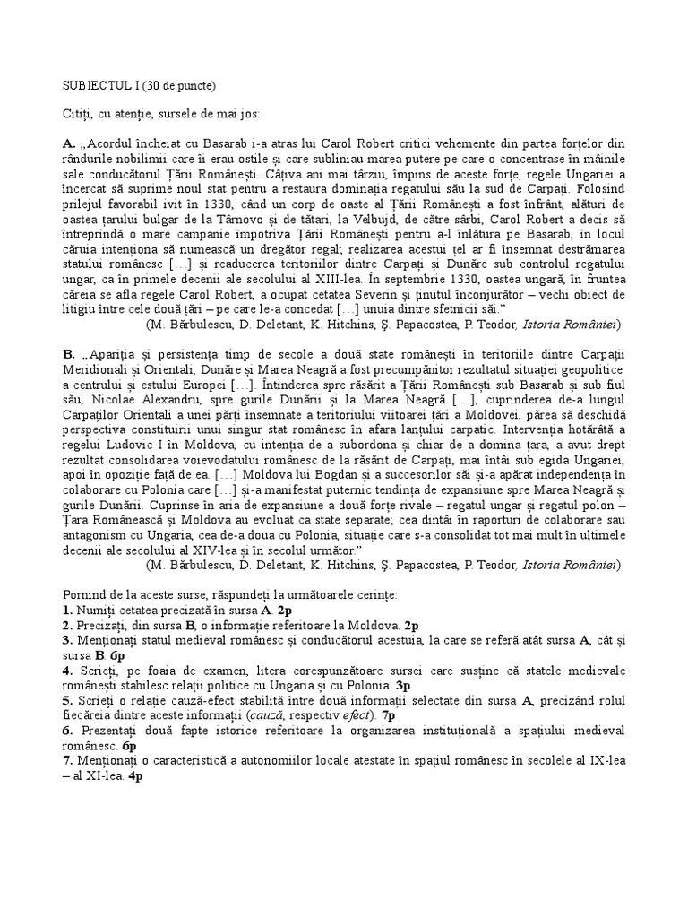 3. Menionai personalitatea politic i un spaiu istoric, precizate att sursa A, ct i n sursa B. 6p