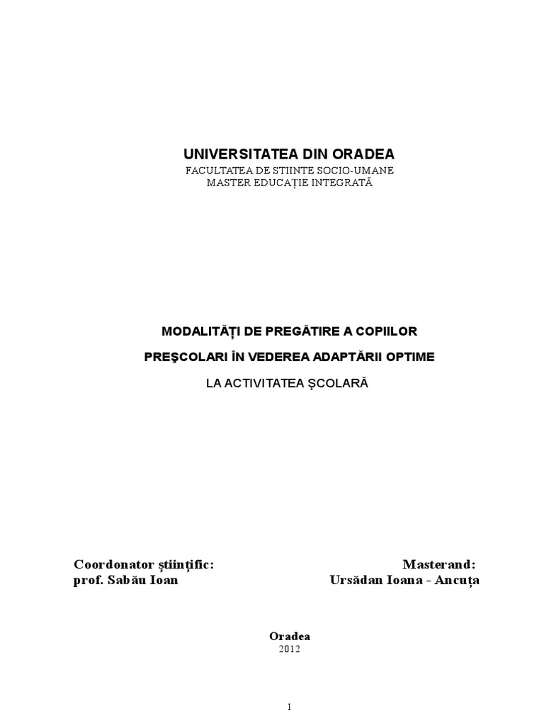 CAPITOLUL V :STUDIU I CERCETARE PSIHOPEDAGOGIC DE LA GRDINI