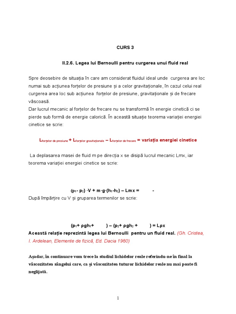 II.2.6. Legea lui Bernoulli pentru curgerea unui fluid real