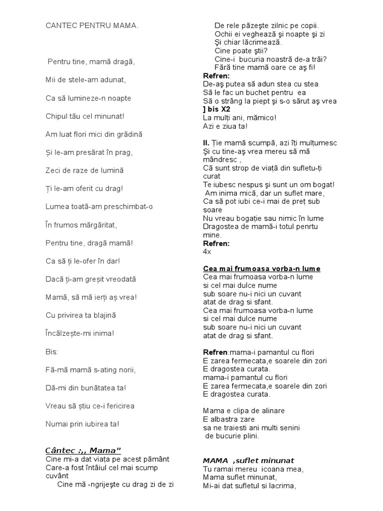 Pentru tine, drag mam! Refren: