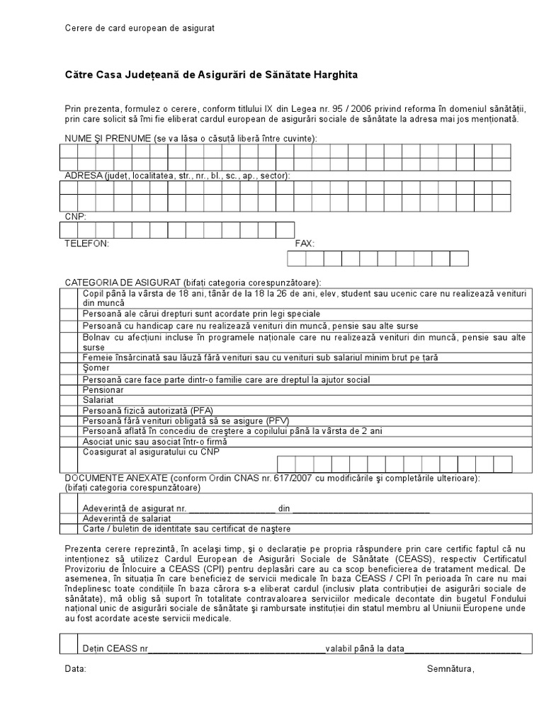 prin care solicit s mi fie eliberat cardul european de asigurri sociale de sntate la adresa mai jos menionat.