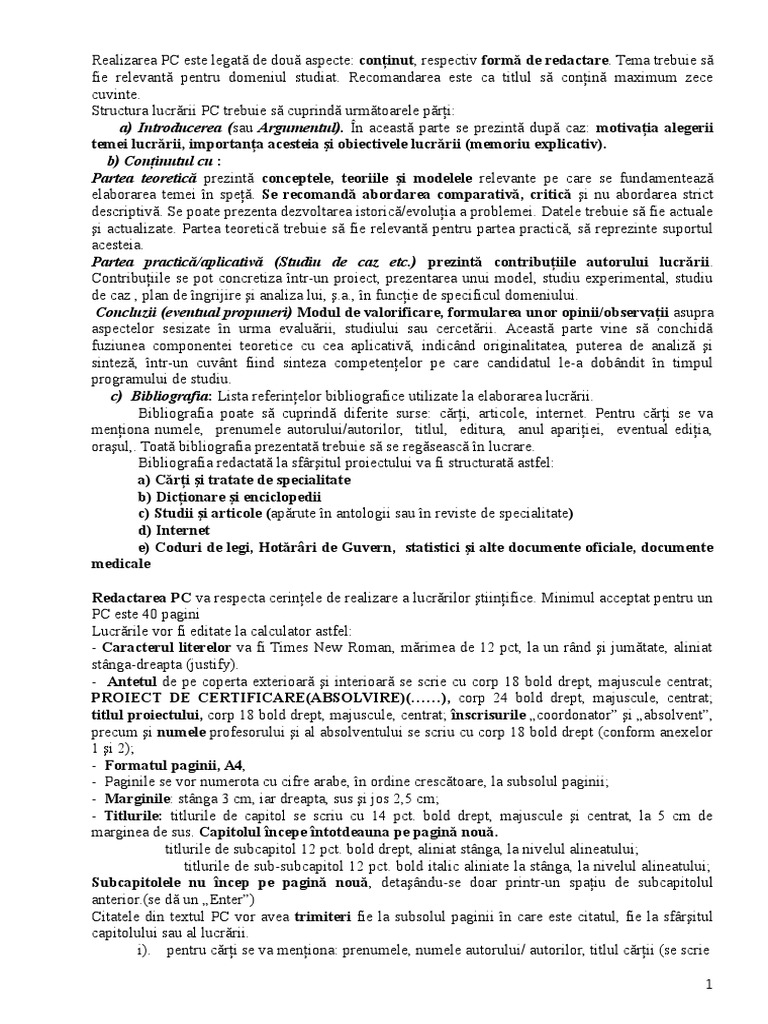 . Redactarea PC va respecta cerinele de realizare a lucrrilor tiinifice. Minimul acceptat pentru