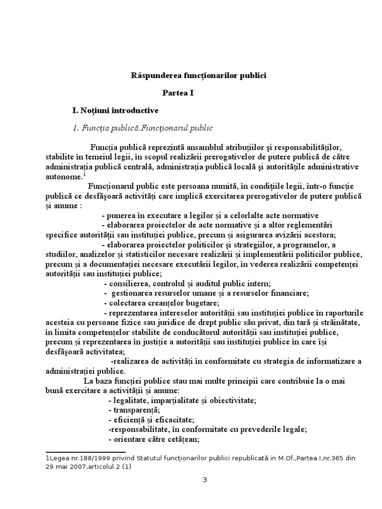 1Legea nr.188/1999 privind Statutul funcionarilor publici republicat in [Link].,Partea I,nr.365 din