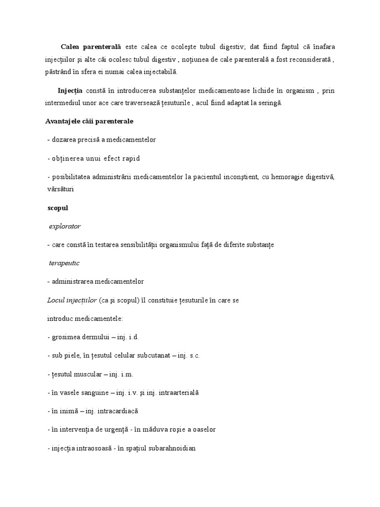 Calea parenteral este calea ce ocolete tubul digestiv; dat fiind faptul c nafara