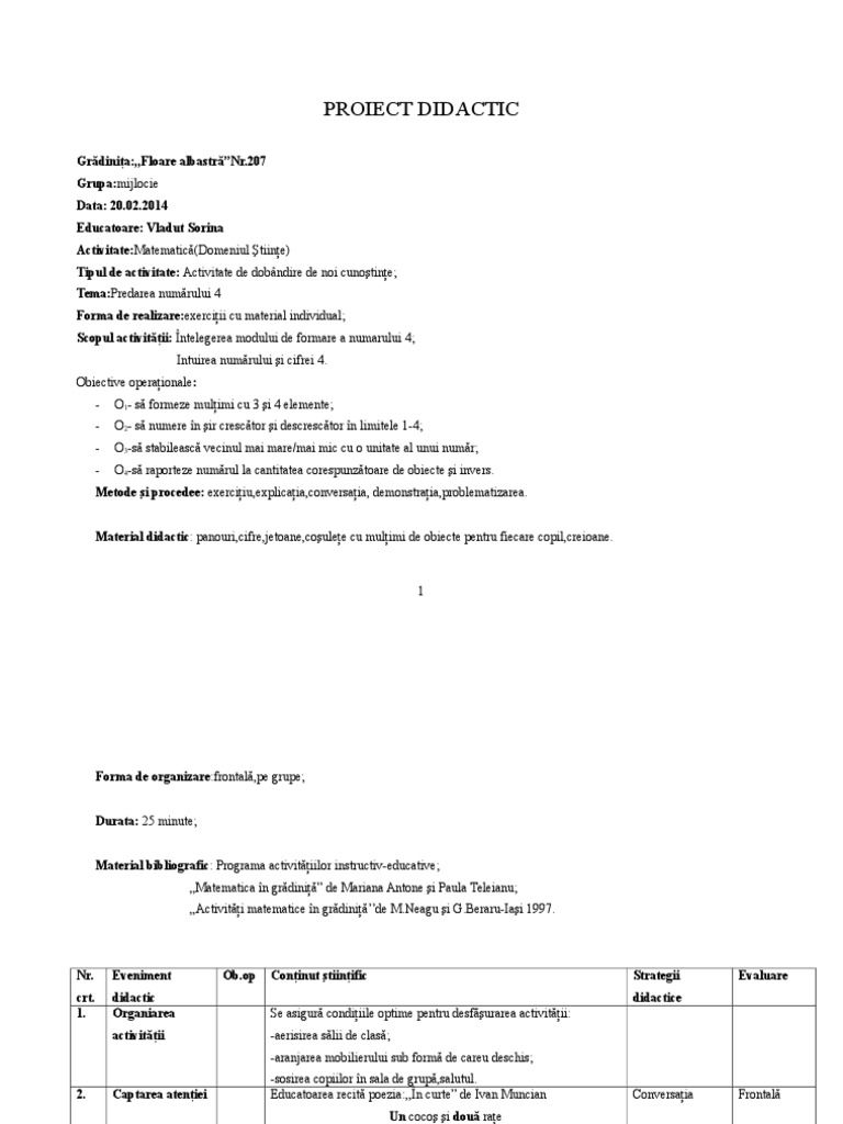Scopul activitii: ntelegerea modului de formare a numarului 4;