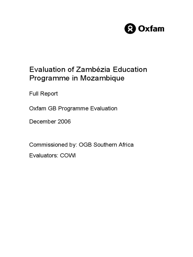 ing, and their parents to benefit from the social organisation of forming com- mittees. It was further envisioned that the programme would play a role in spreading messages about the HIV/AIDS pandemic and mitigating its effects. ZEP aimed to work with all actors (government, non-government and CBOs) involved in basic education in Zambézia province, to develop models that can be applied nationally to provide improved access to and quality of basic pri- mary education in Mozambique. Lessons learnt from this programme were also to be shared through Oxfam networks in other parts of the world.