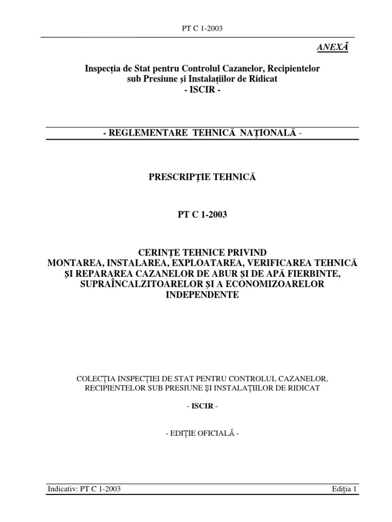 prezenta prescripţie tehnică este ISCIR-Inspecţia de Stat pentru Controlul Cazanelor,