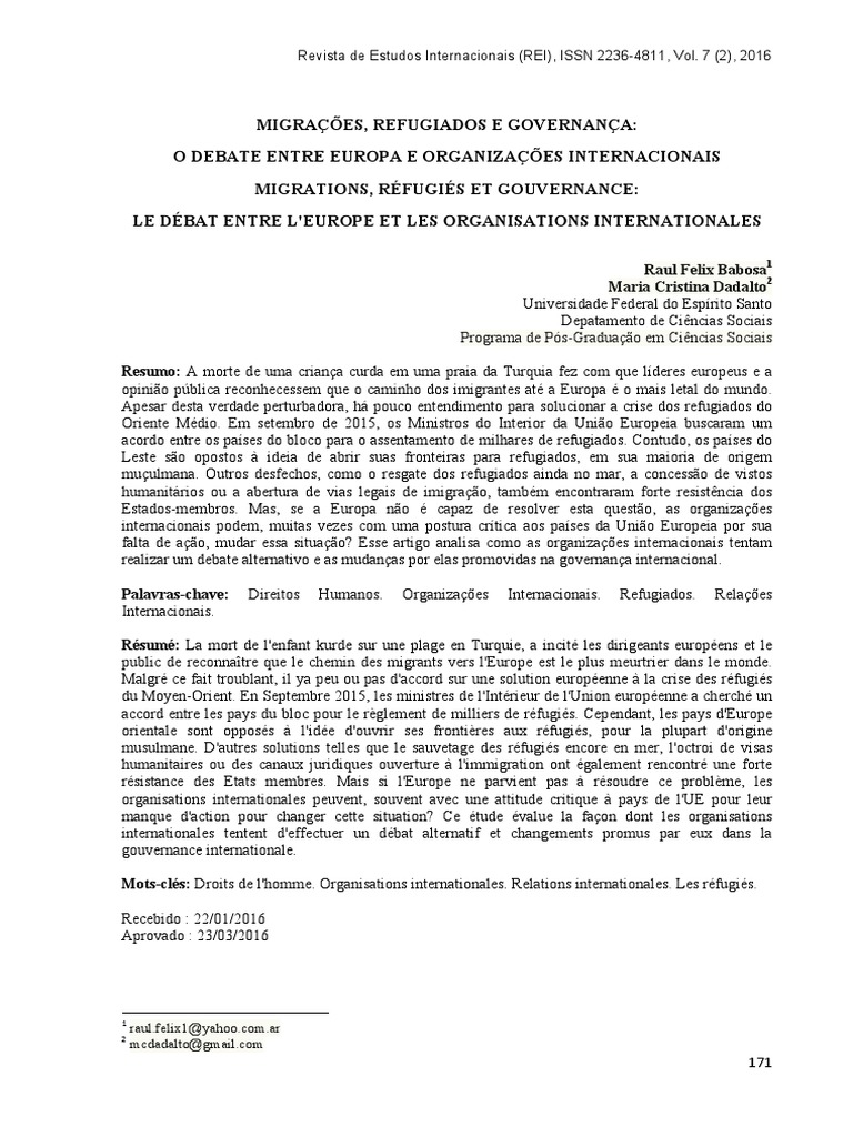 Revista de Estudos Internacionais (REI), ISSN 2236-4811, Vol. 7 (2), 2016