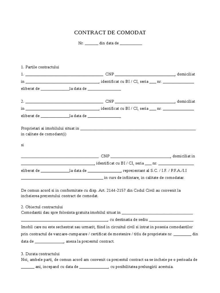 CONTRACT DE COMODAT