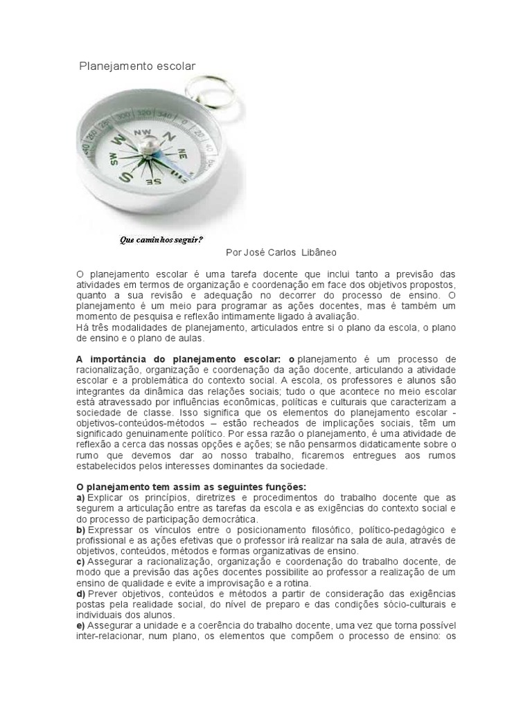 O planejamento escolar uma tarefa docente que inclui tanto a previso das