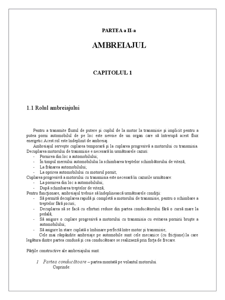 Trecerea ambreiajului din stare cuplat n stare decuplat se obine n urma ac iunii de debreiere