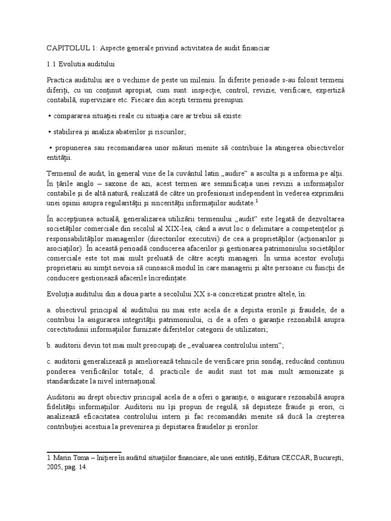 1 Marin Toma Iniiere n auditul situaiilor financiare, ale unei entiti, Editura CECCAR, Bucureti,