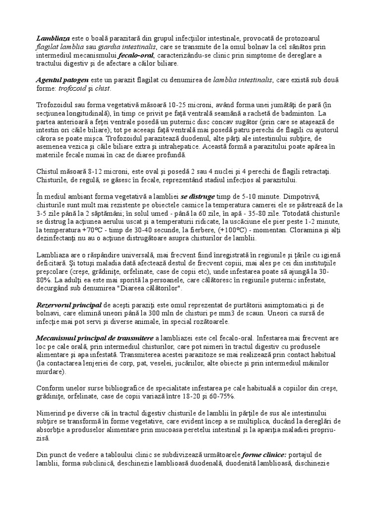 Nimerind pe diverse ci n tractul digestiv chisturile de lamblii n prile de sus ale intestinului