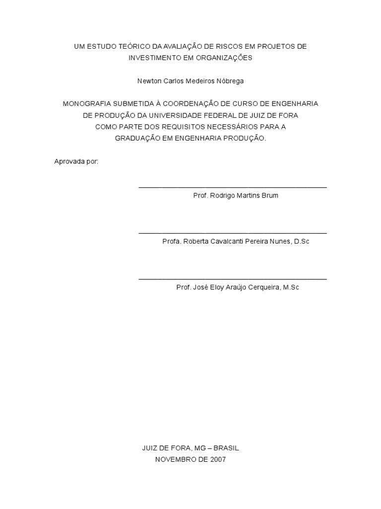 UM ESTUDO TERICO DA AVALIAO DE RISCOS EM PROJETOS DE