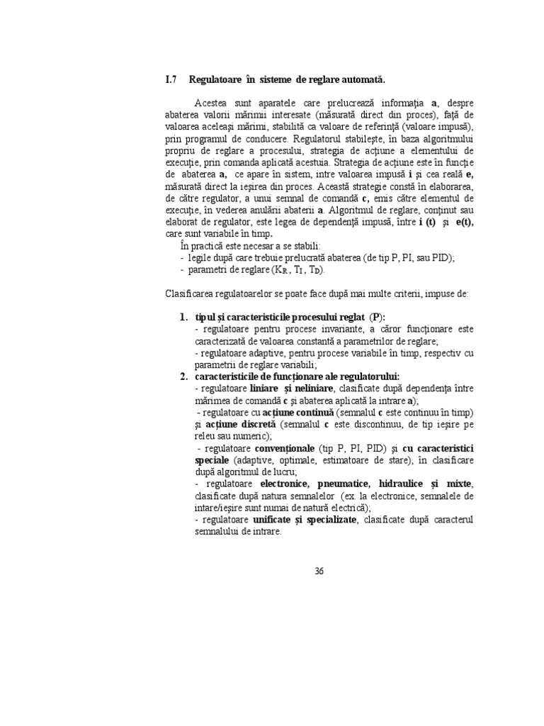 - regulatoare convenionale (tip P, PI, PID) i cu caracteristici