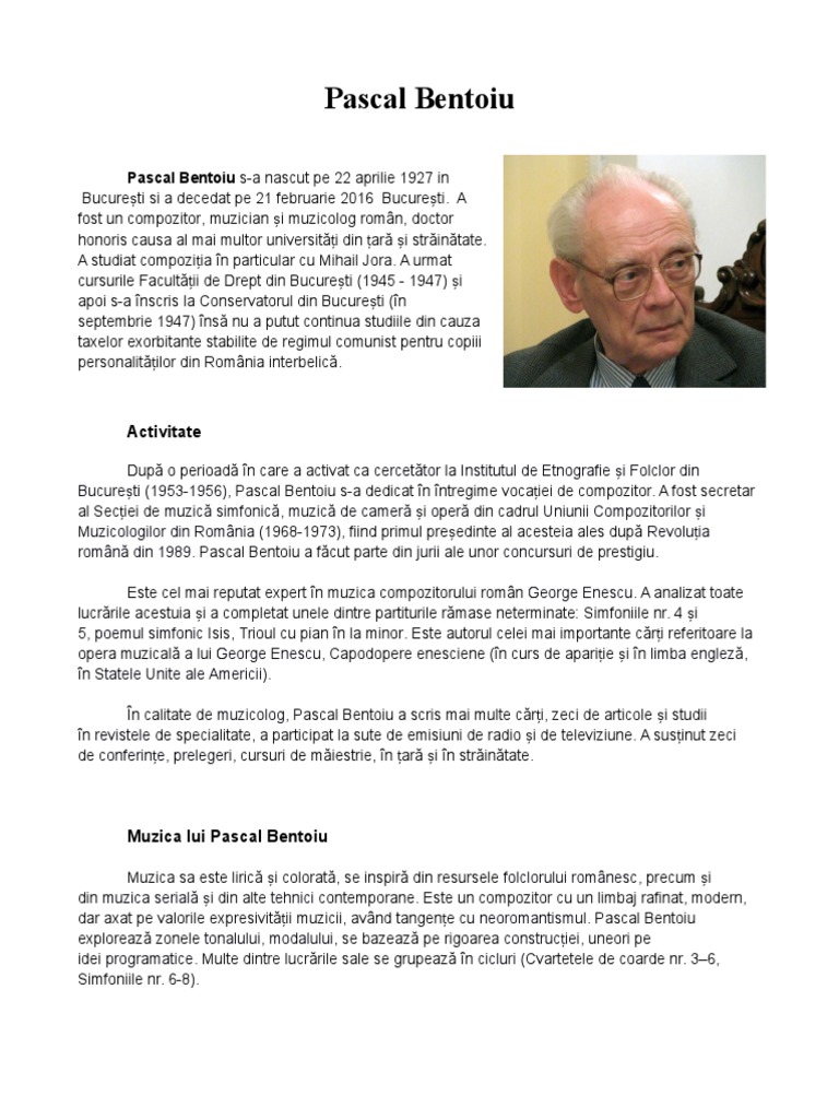 Pascal Bentoiu s-a nascut pe 22 aprilie 1927 in