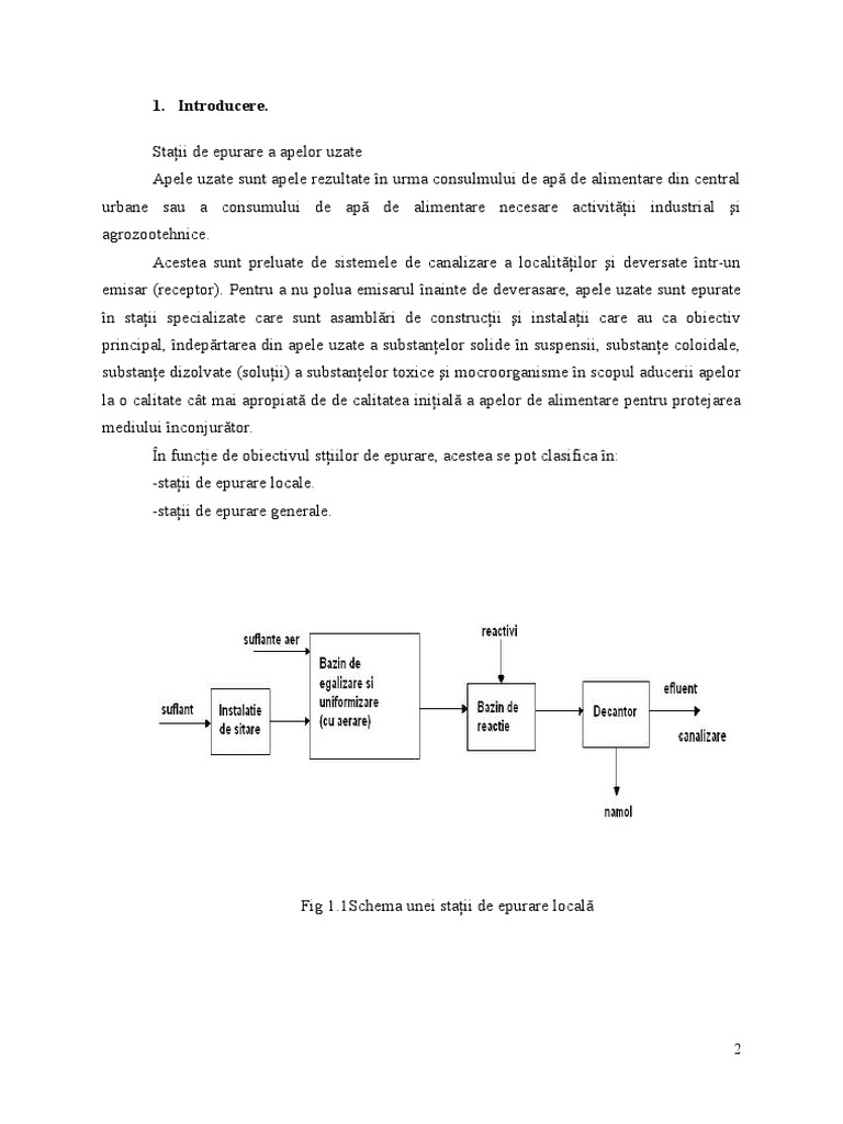 Fig. 1.3 Schema staiei de epurare a apei uzate menajere [1