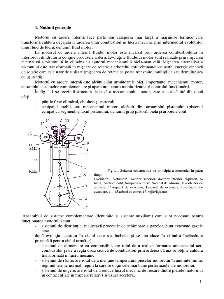 Motorul cu ardere intern este alctuit din urmtoarele pri importante: mecanismul motor,