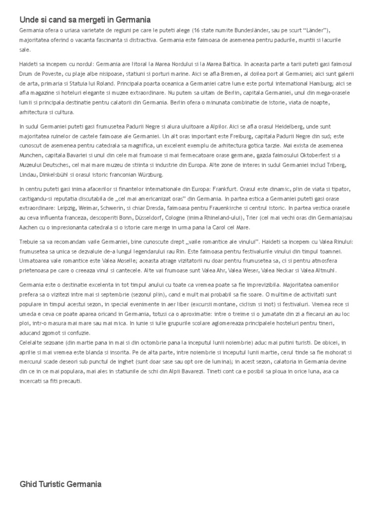 culinara de neuitat. Fiind o destinatie de top Germania are multe locuri unde puteti sta, din Munchen pana la Frankfurt am Main,