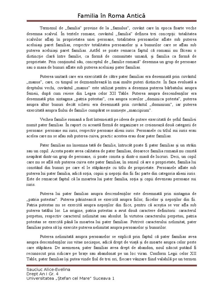 descendenilor. (Pater familias putea fi soul, bunicul sau strbunicul, n funcie de durata de
