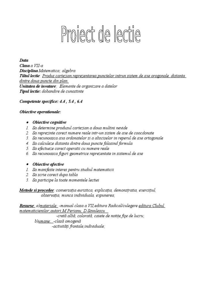 Tiltul lectie: Produs cartezian,reprezentarea punctelor intrun sistem de axe orogonale, distanta