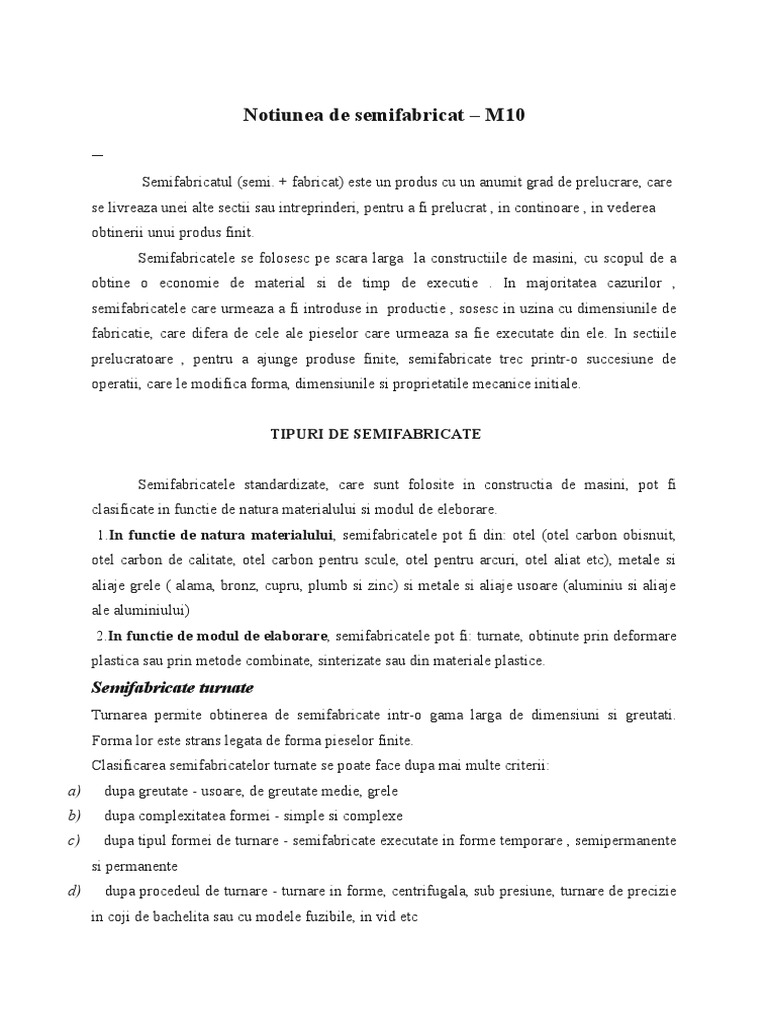 [Link] functie de modul de elaborare, semifabricatele pot fi: turnate, obtinute prin deformare