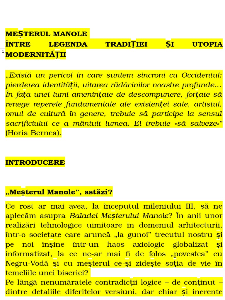 Balada Meterului Manole a crezut a o descifra i a o