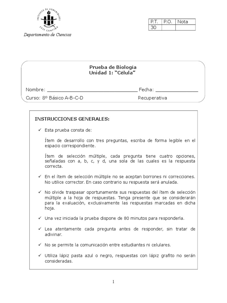 Prueba de Biologa