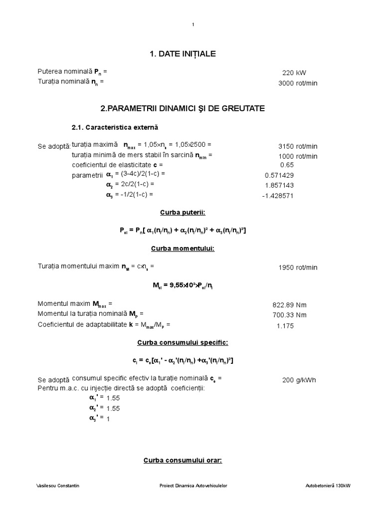 Vasilescu Constantin Proiect Dinamica Autovehiculelor Autobetonier 130 kW