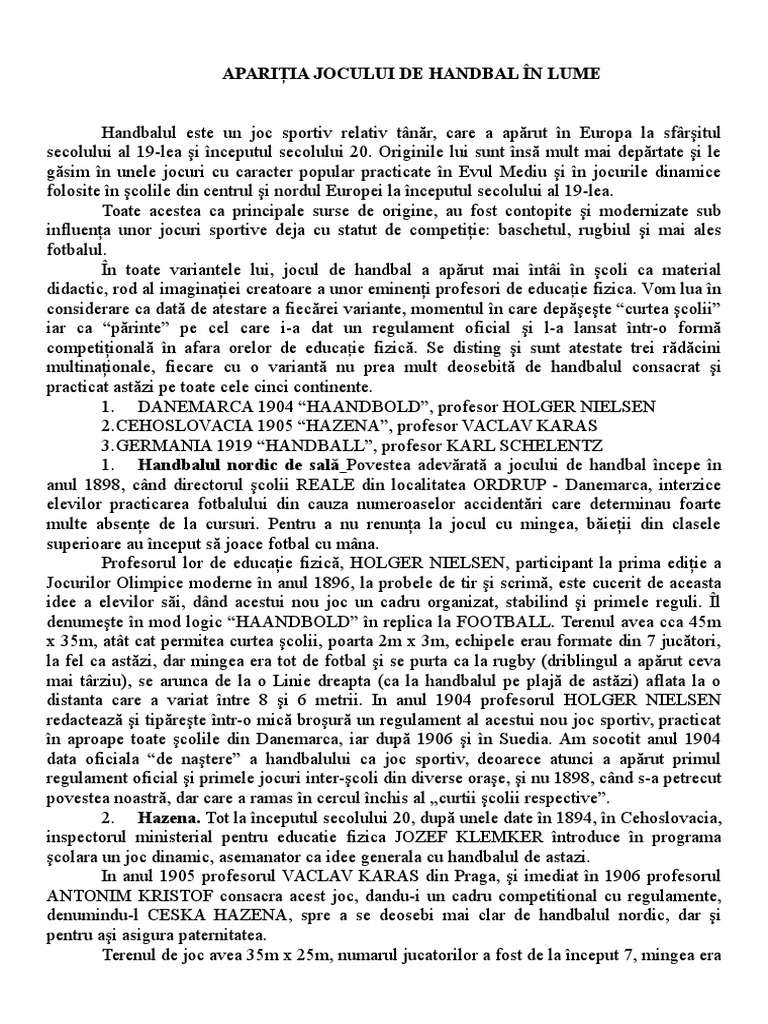 Handbalul este un joc sportiv relativ tnr, care a aprut n Europa la sfritul