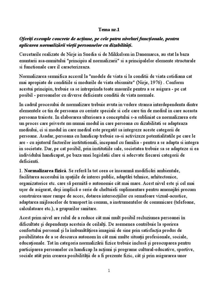 aplicarea normalizrii vieii persoanelor cu dizabiliti.