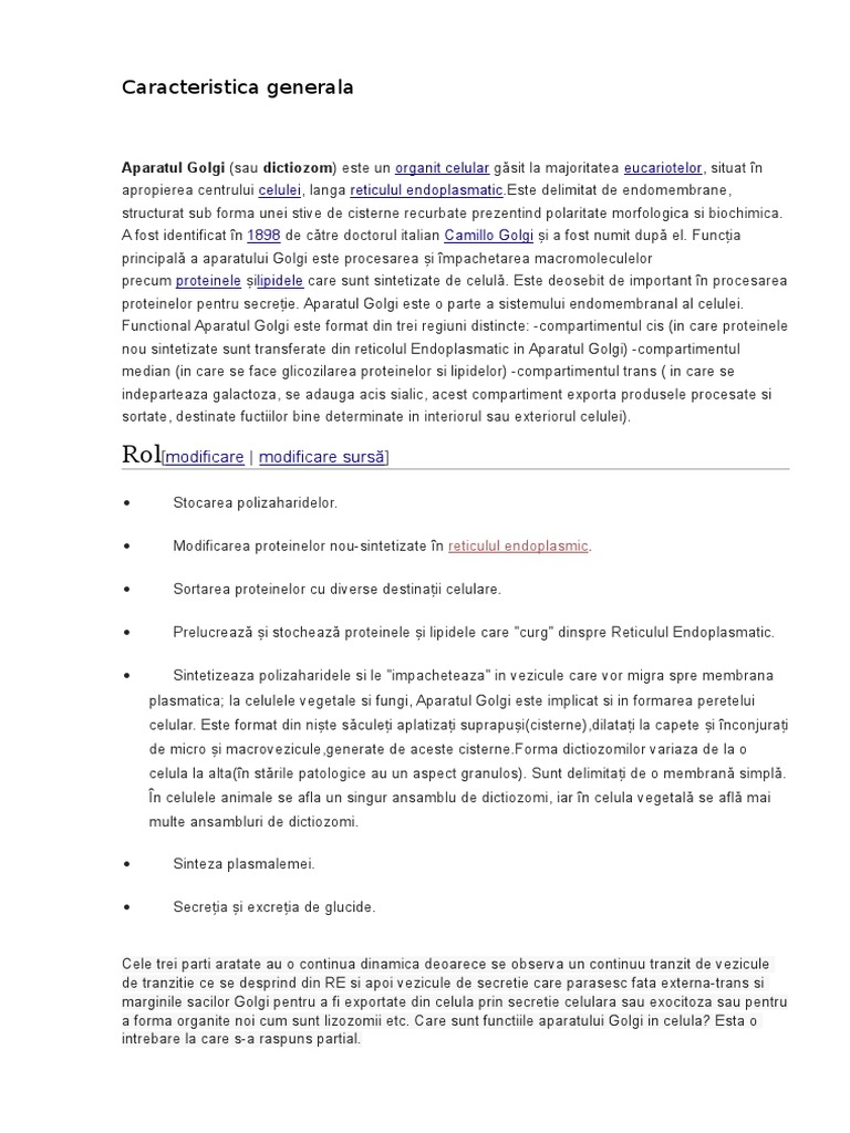 [Link] celulara-pare a fi de la inceput cea mai evidenta si cea mai importanta. Aparatul Golgi