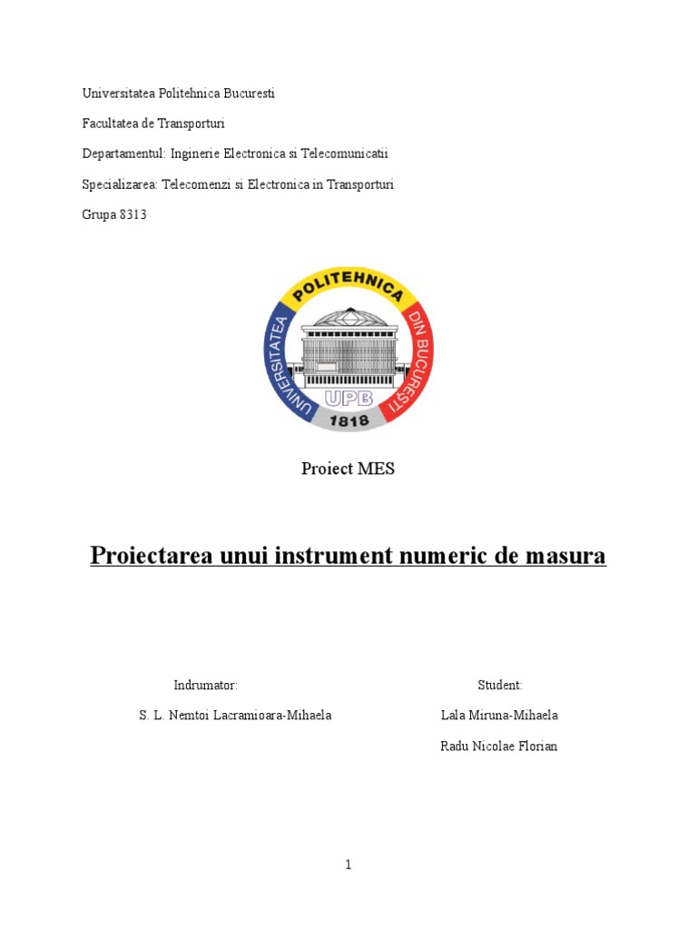 Sa se proiecteze un aparat de masura numeric capabil sa indeplineasca urmatoarele functii: