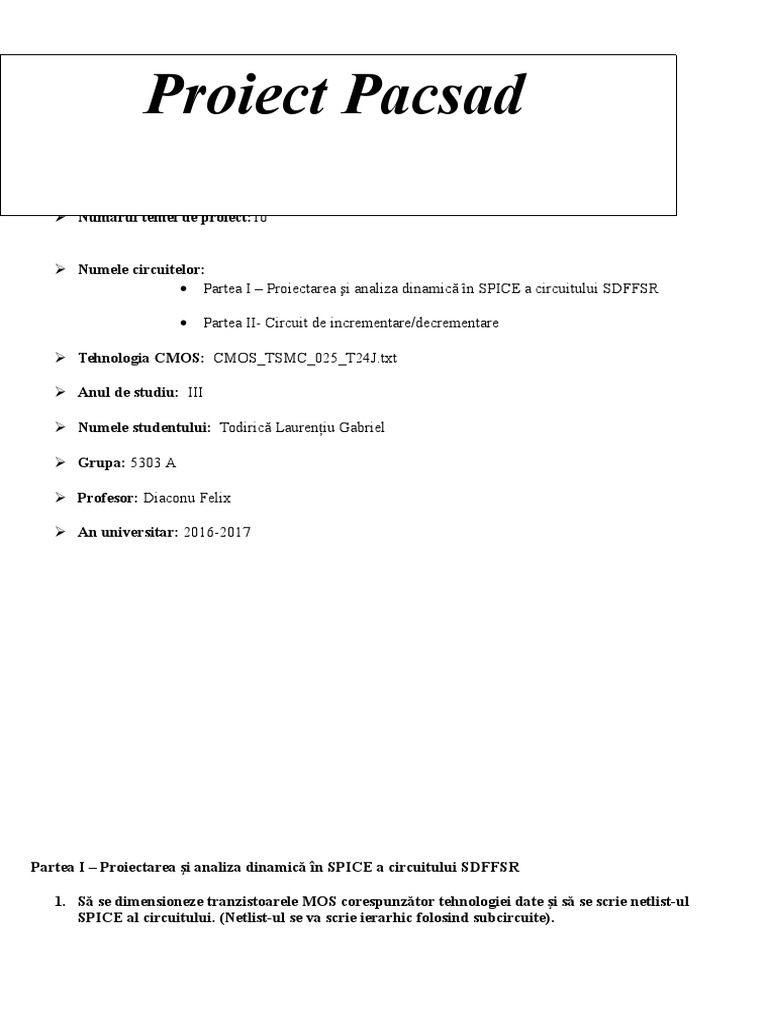 Partea I Proiectarea i analiza dinamic n SPICE a circuitului SDFFSR
