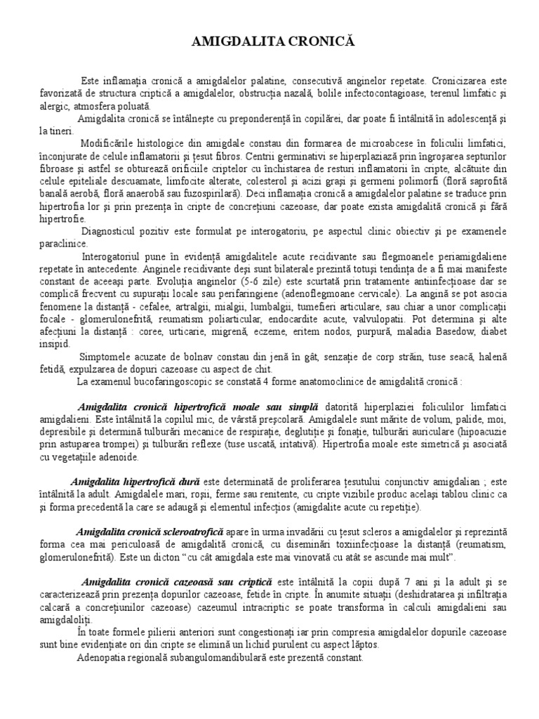 Amigdalita cronic cazeoas sau criptic este ntlnit la copii dup 7 ani i la adult i se
