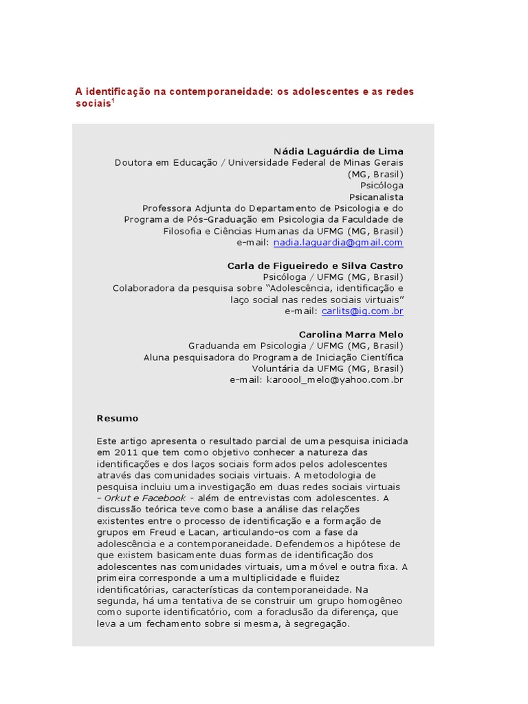 Citaco/Citation: LAGUARDIA, N. A identificao na contemporaneidade: