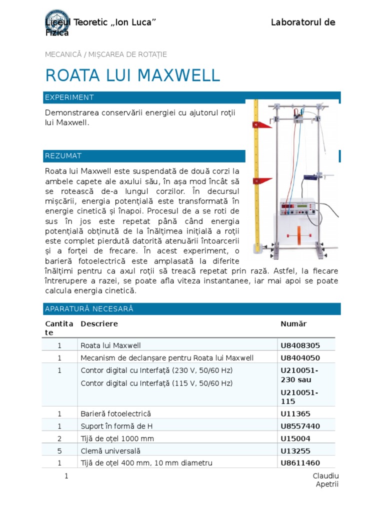 1 Mecanism de declanare pentru Roata lui Maxwell U8404050