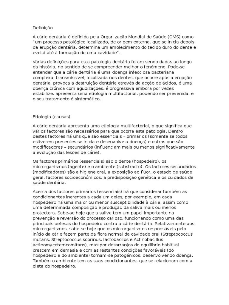 A crie dentria definida pela Organizao Mundial de Sade (OMS) como
